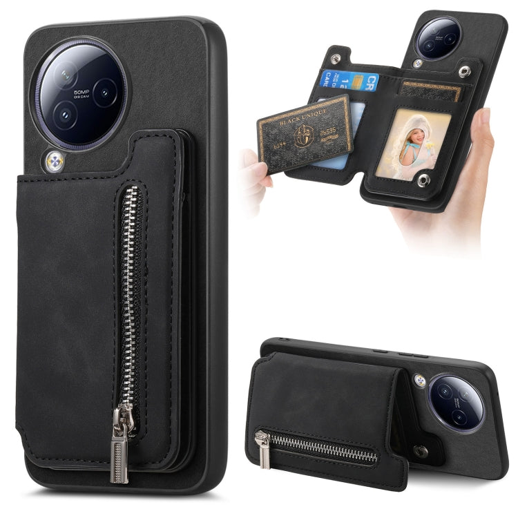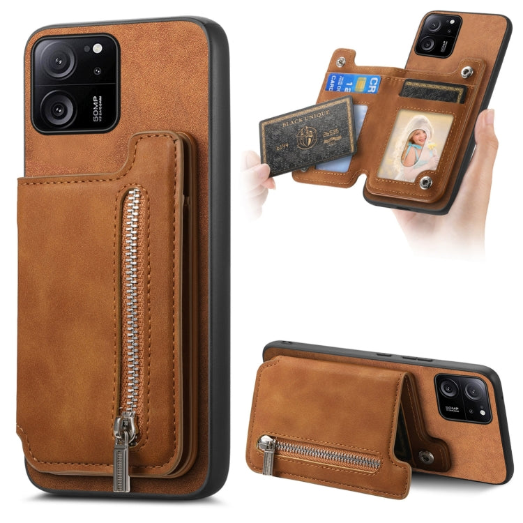 Retro MagSafe Zipper Wallet Card Bag Back Phone Case, For Redmi K60 Ultra, For Xiaomi Civi 3 5G, For Redmi 13C / Poco C65 / M6