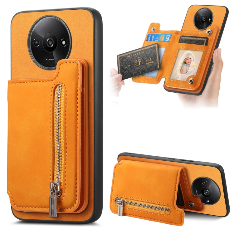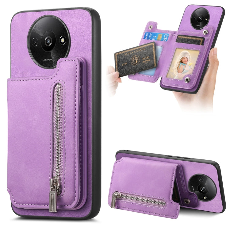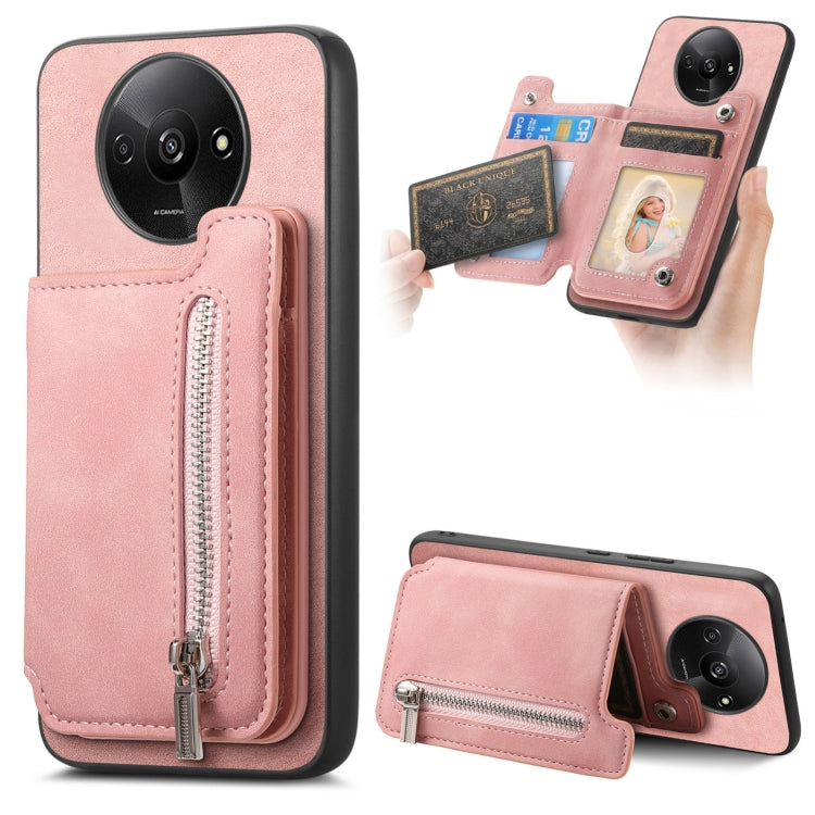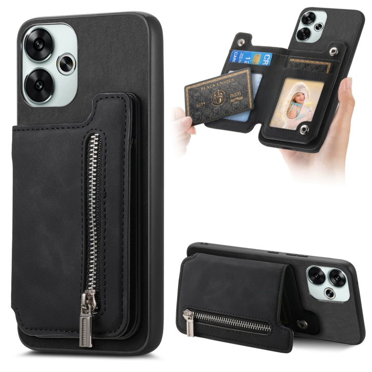 Retro MagSafe Zipper Wallet Card Bag Back Phone Case, For Redmi Turbo 3 5G, For Redmi A3, For Redmi Note 13 4G