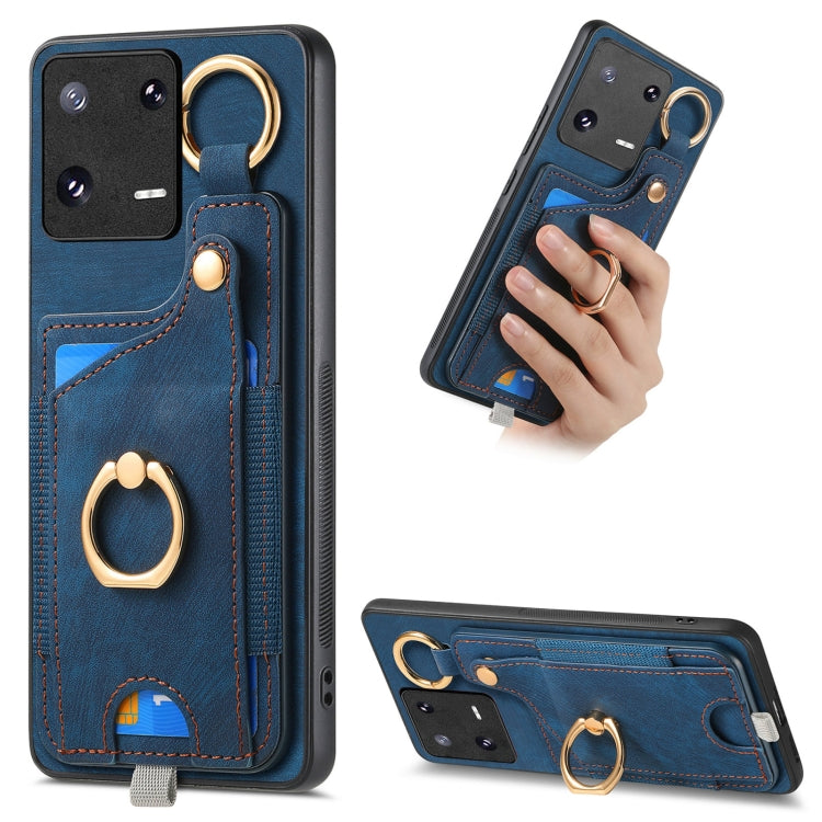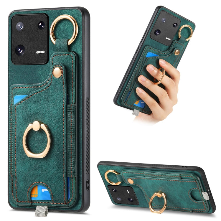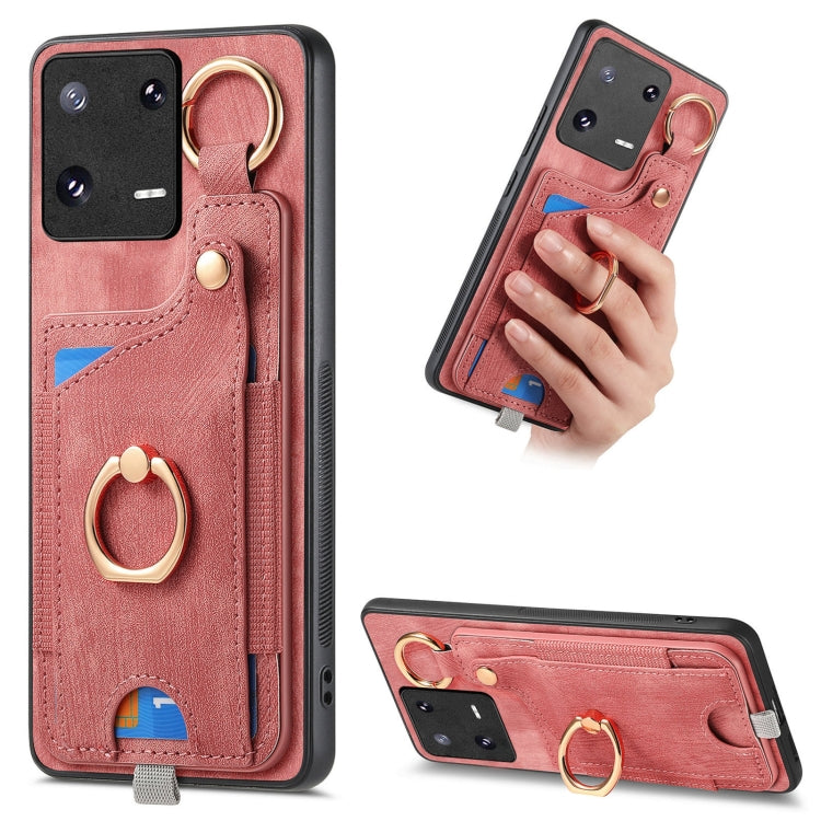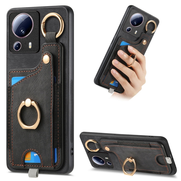 Retro Skin-feel Ring Card Bag Phone Case with Hang Loop, For Redmi 12C, For Xiaomi 13 Lite, For Redmi K60 / 60 Pro, For Xiaomi 13 Pro 5G