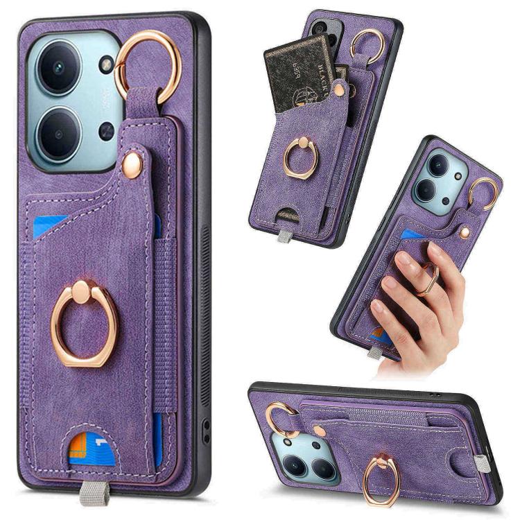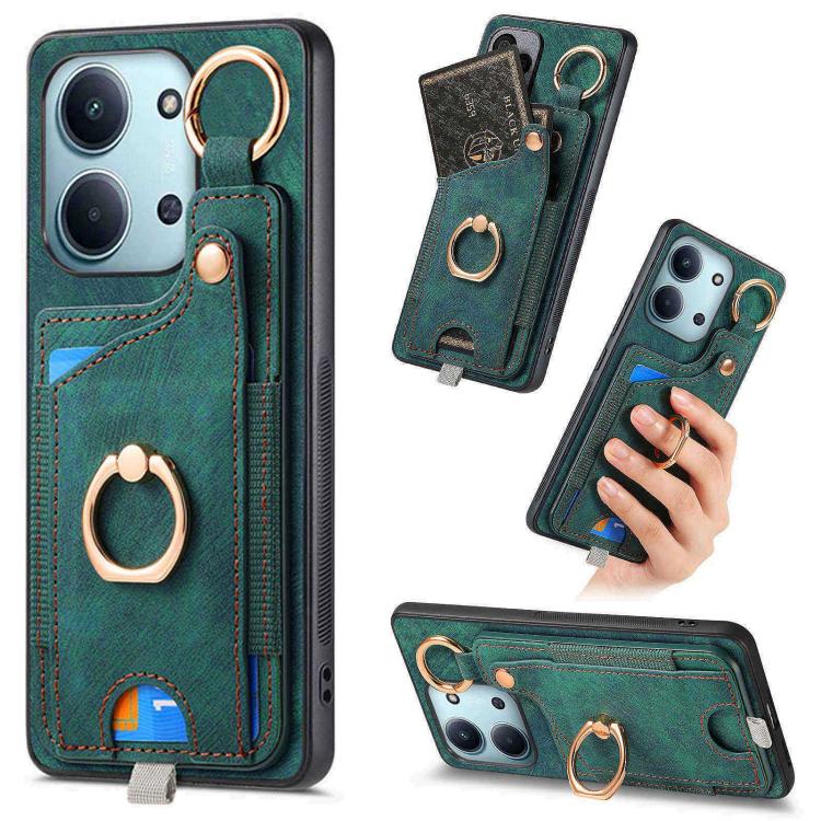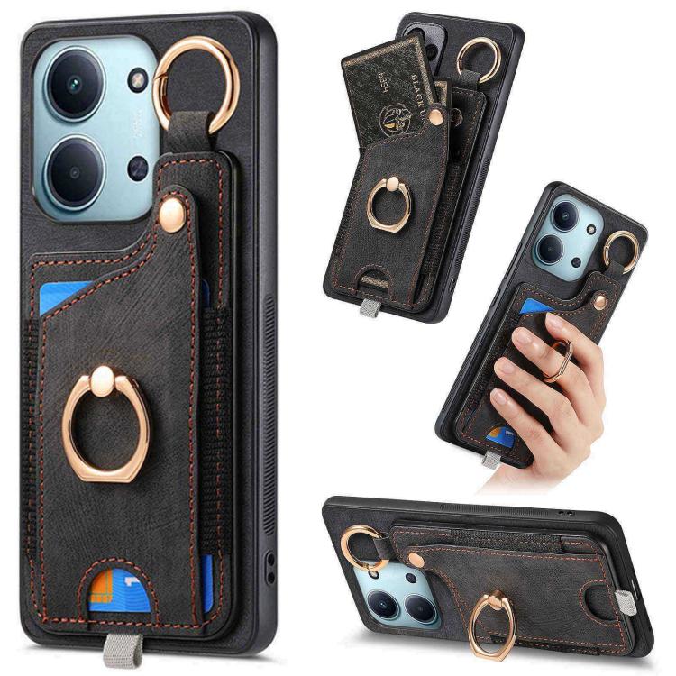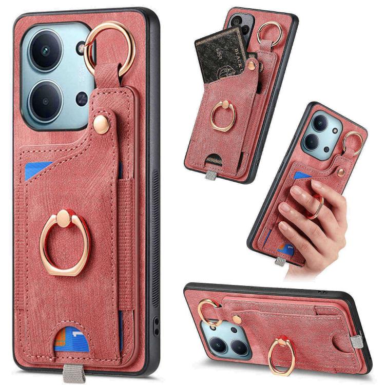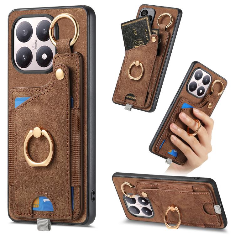Retro Skin-feel Ring Card Bag Phone Case with Hang Loop, For Redmi 15C 5G / 4G Global 171mm, For Xiaomi 15T, For Redmi K80 Pro / Poco F7 Ultra, For Redmi K80 / Poco F7 Pro