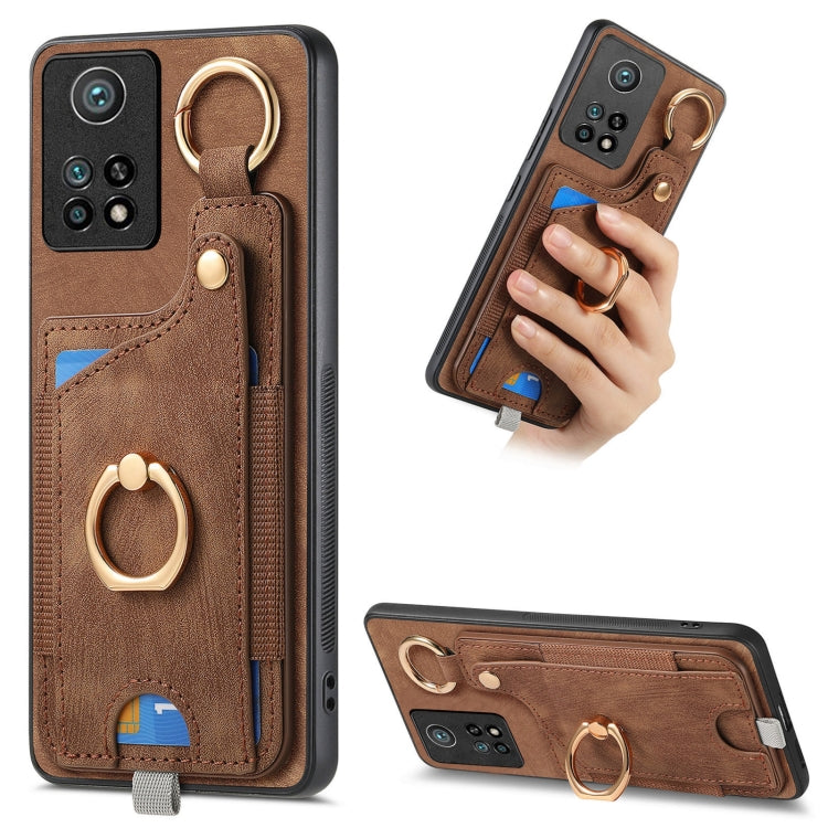 Retro Skin-feel Ring Card Bag Phone Case with Hang Loop, For Xiaomi Mi 10T Pro, For Redmi 9C, For Redmi Note 9