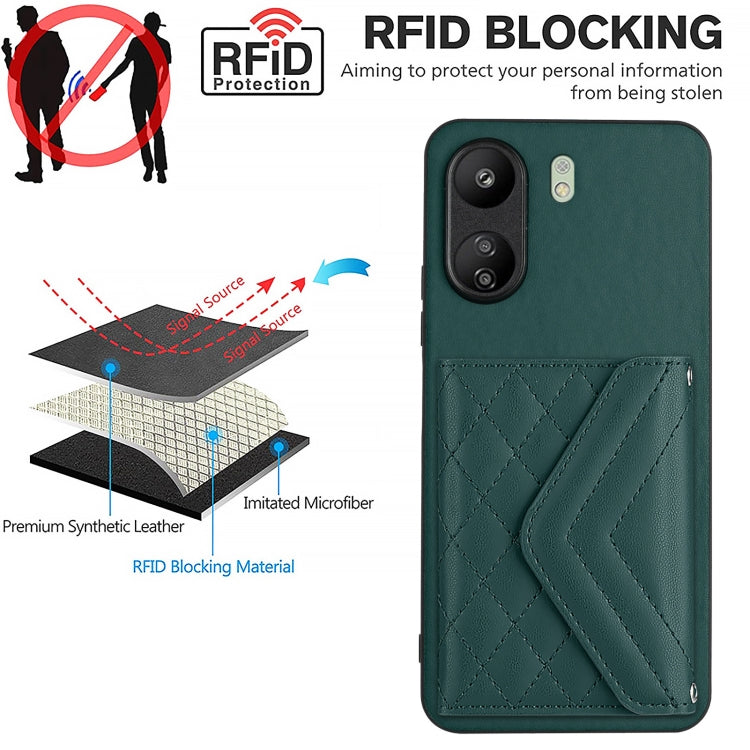 Rhombic Texture Card Bag RFID Phone Case, For Xiaomi Redmi 13C 4G / Poco C65, For Xiaomi Redmi Note 13 5G Global, For Xiaomi Redmi Note 13 Pro+, For Xiaomi Redmi Note 13 Pro 5G Global