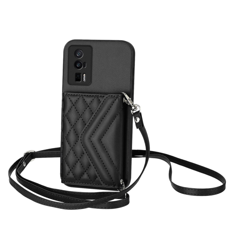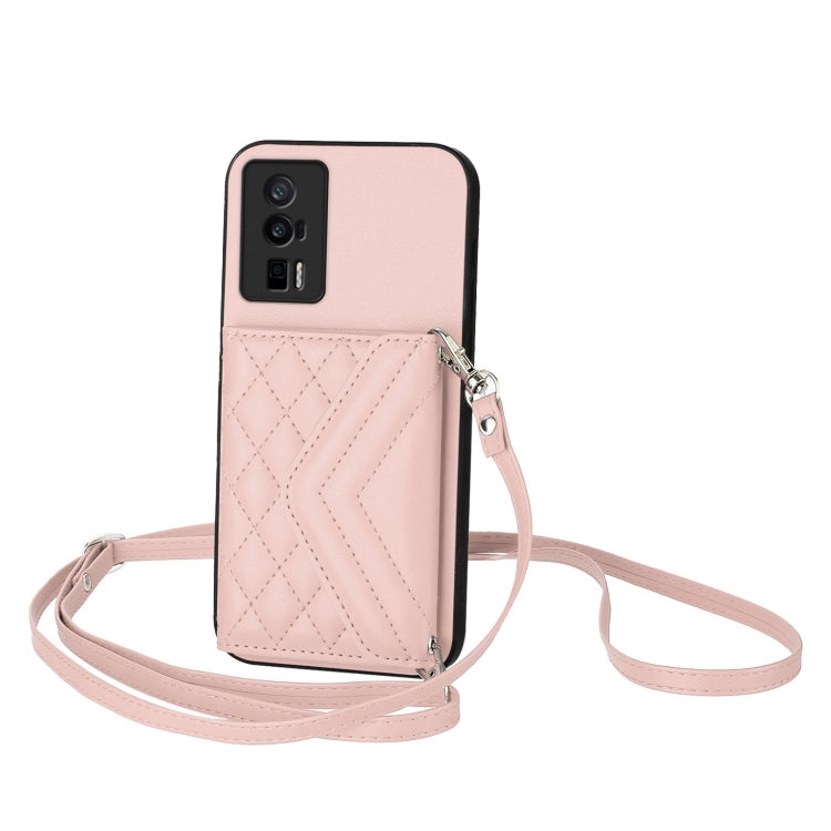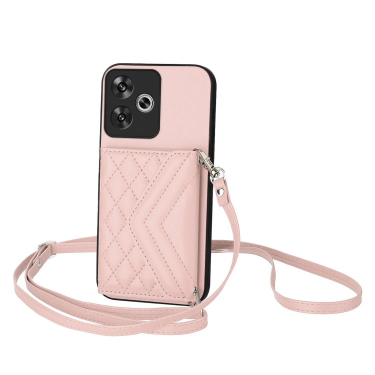 Rhombic Texture Card Bag RFID Phone Case with Long Lanyard, For Xiaomi Poco F6 5G India, For Xiaomi Civi 4 Pro, For Xiaomi Poco C65, For Xiaomi Poco F5 Pro 5G