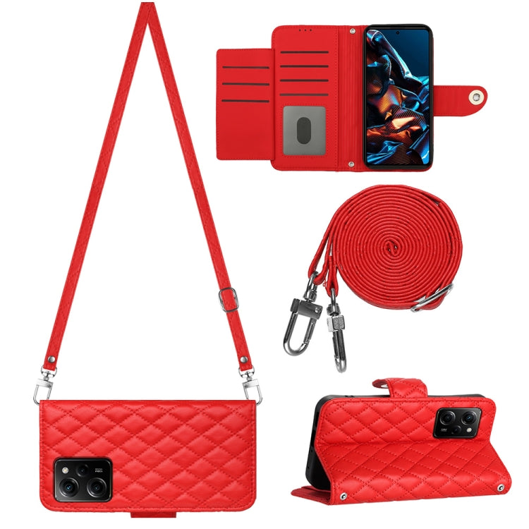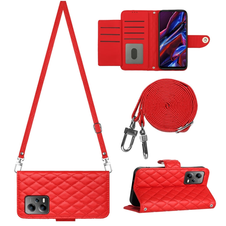 Rhombic Texture Flip Leather Phone Case with Long Lanyard, For Xiaomi Redmi Note 12 Pro 5G Global, For Xiaomi Redmi Note 12 Pro Speed, For Xiaomi Redmi Note 12 5G Global / Poco X5, For Xiaomi Redmi Note 11 Pro 5G/4G Global