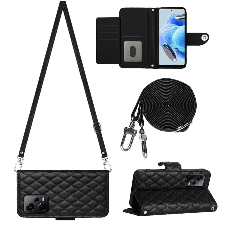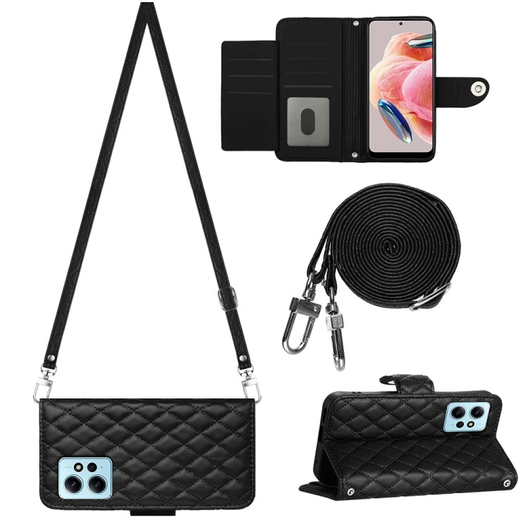 Rhombic Texture Flip Leather Phone Case with Long Lanyard, For Xiaomi Redmi Note 12S 4G Global, For Xiaomi Redmi Note 12 4G Global, For Xiaomi Redmi 12C / 11A / Poco C55, For Xiaomi Redmi Note 12 Pro+ 5G Global