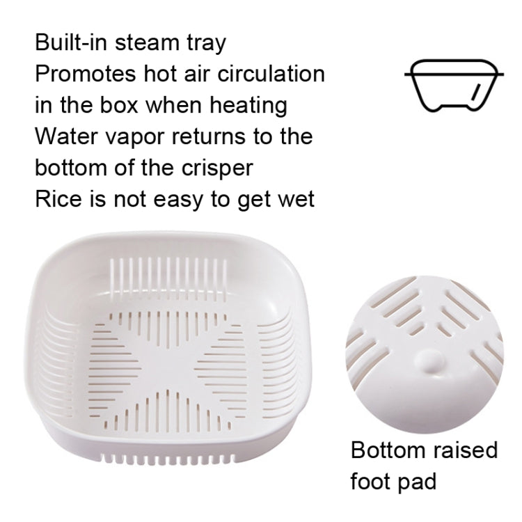 1. The built-in steaming tray and the raised foot pad at the bottom can promote the circulation of hot air in the box when heating, and the water vapor will return to the bottom of the fresh-keeping box, so that the rice is not easy to get wet
