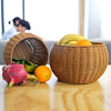 Round Snack Basket Rattan Woven Home Fruit and Vegetable Storage Basket Kitchen Drain Basket, 20 x 16 cm, 25 x 18 cm