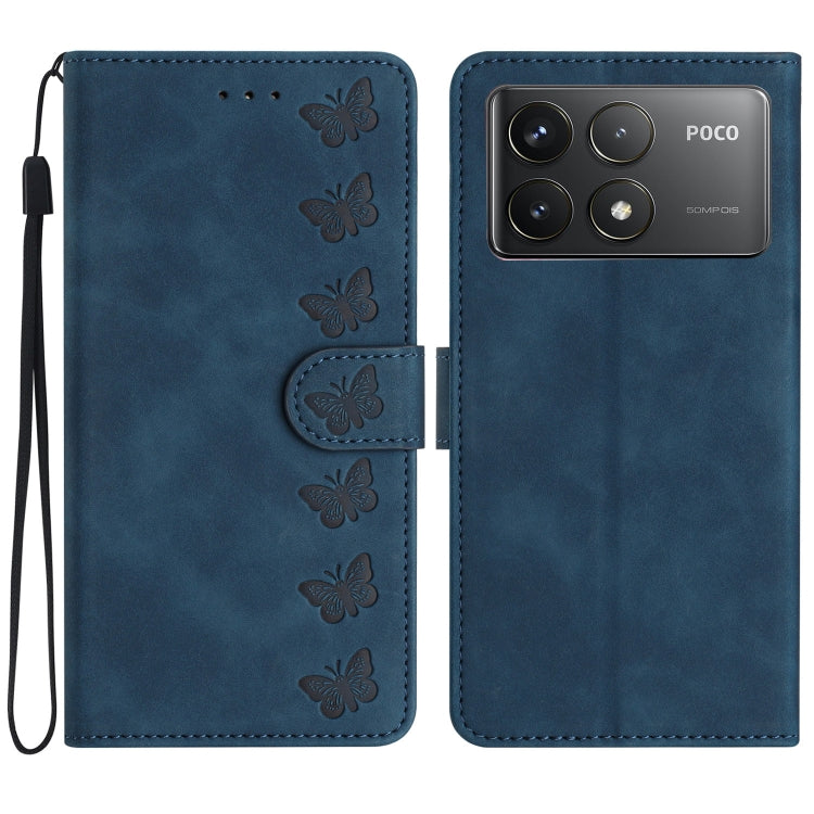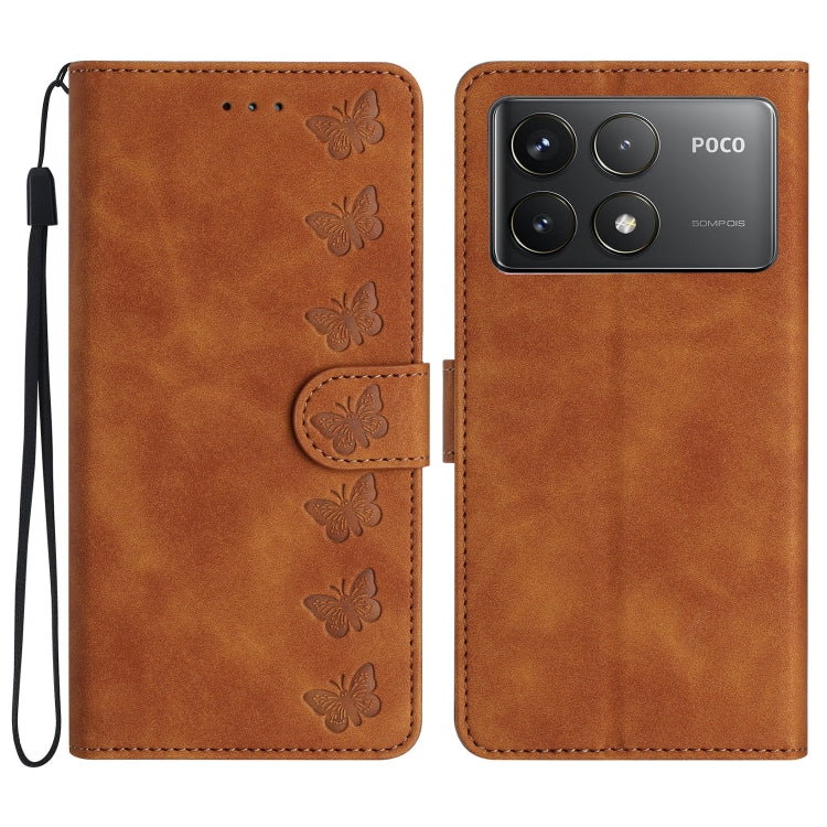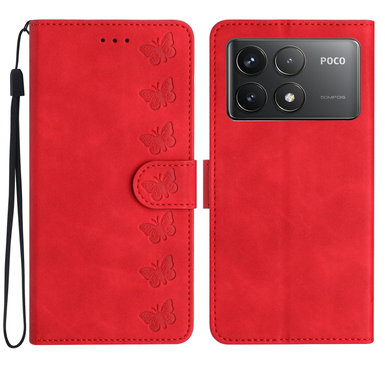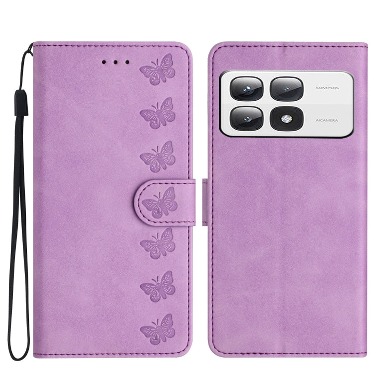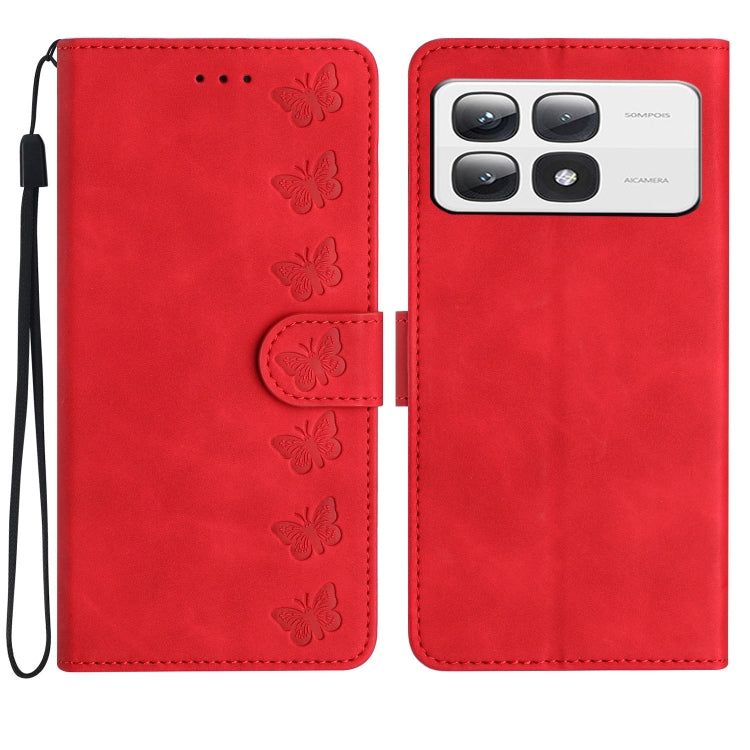 Seven Butterflies Embossed Leather Phone Case, For Xiaomi 14T Pro, For Xiaomi 14T, For Xiaomi Poco F6 Pro, For Xiaomi Poco C61