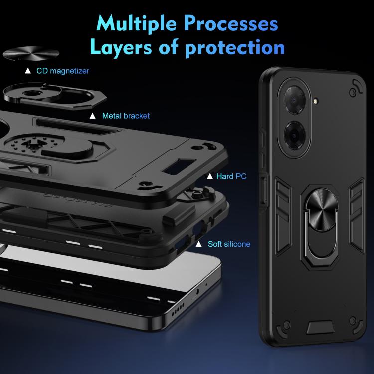 Shockproof Metal Ring Holder Phone Case, For Xiaomi Poco C71 / Redmi A5 4G 171.7mm, For Redmi Note 14 4G 164.84mm, For Redmi A4 5G, For Redmi Note 14 5G, For Redmi Note 14 Pro+ 5G, For Redmi Note 14 Pro 5G, For Redmi 14C 4G, For Redmi 13