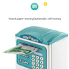 Simulation Password Fingerprint Sensor Unlocking Money Box Automatic Roll Money Safe ATM Piggy Bank, Pink, Blue