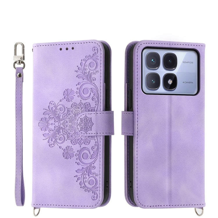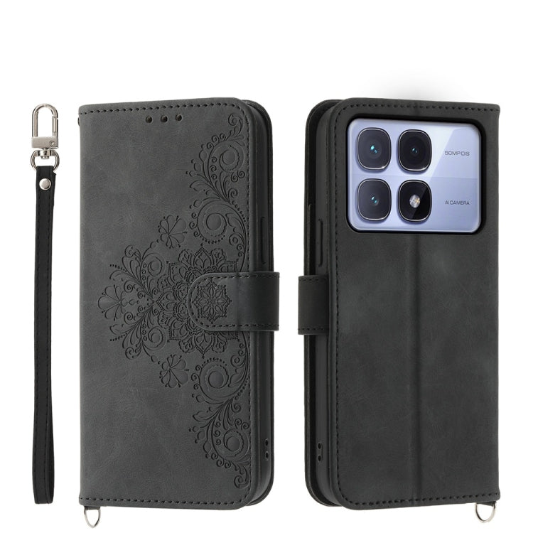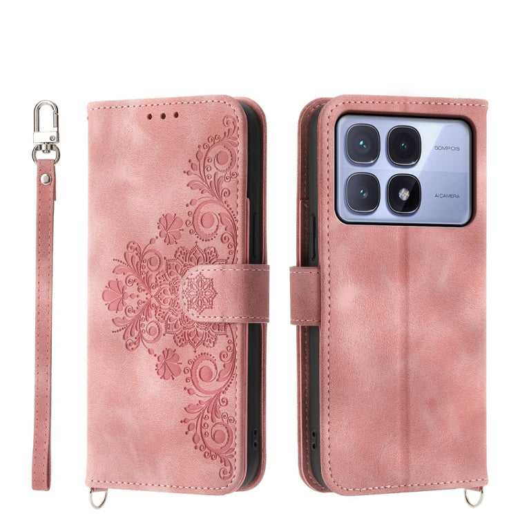 Skin Feel Flowers Embossed Wallet Leather Phone Case, For Redmi Note 14 Pro 4G, For Redmi Note 14 4G 163.25mm Global, For Redmi 14C 4G, For Redmi K70 Ultra