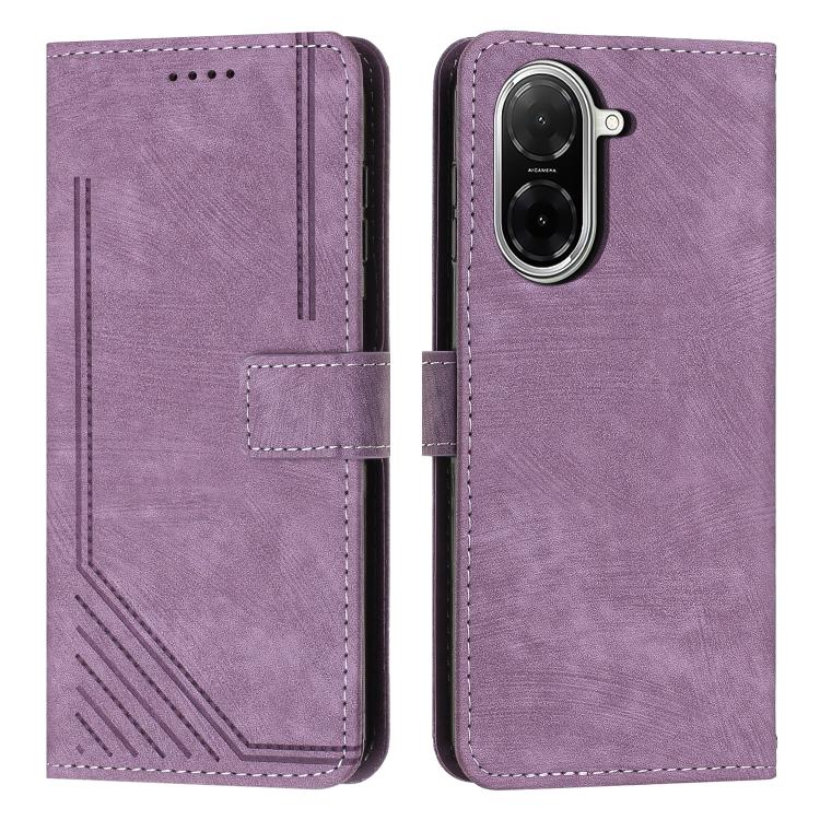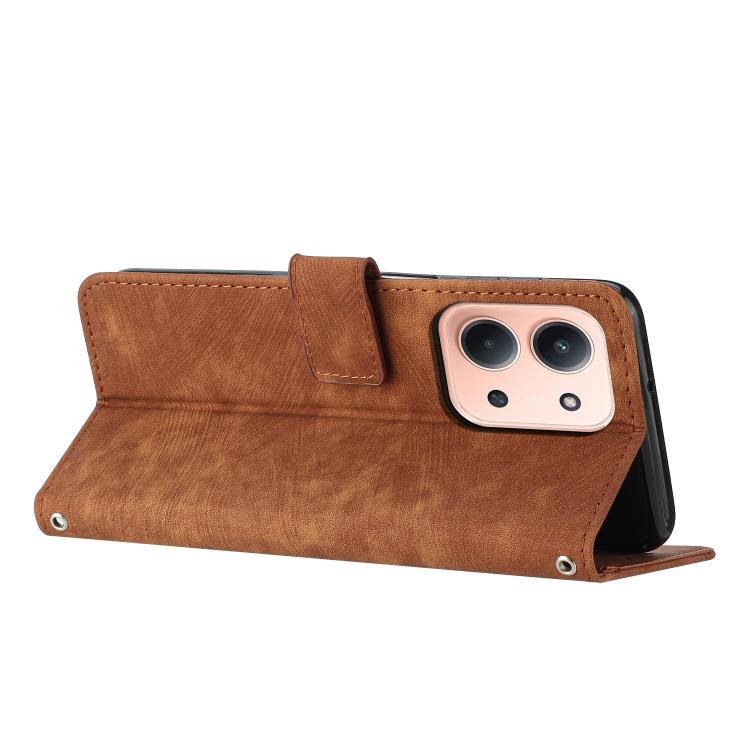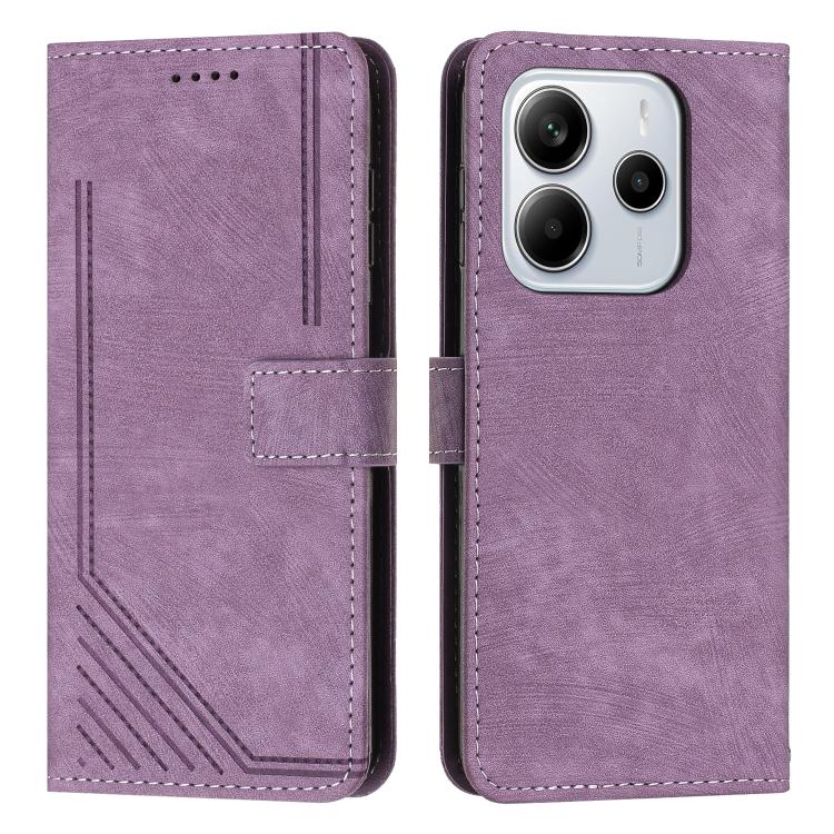 Skin Feel Stripe Pattern Leather Phone Case with Lanyard, For Redmi 15C 5G / 4G Global 171mm, For Redmi A5 5G 171.7mm / Poco C71, For Redmi Note 14 4G 164.84mm, For Redmi Note 14 Pro 5G Global