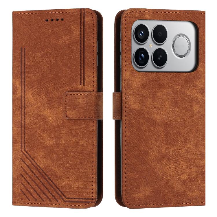 Skin Feel Stripe Pattern Leather Phone Case with Lanyard, For Redmi K90 Pro Max / Poco F8 Ultra, For Redmi K90 / Poco F8 Pro, For Redmi Note 15 Pro+ 5G Global 163.3mm, For Redmi Note 15 Pro 5G Global 163.6mm