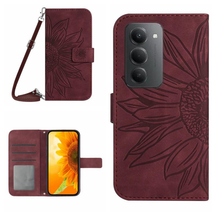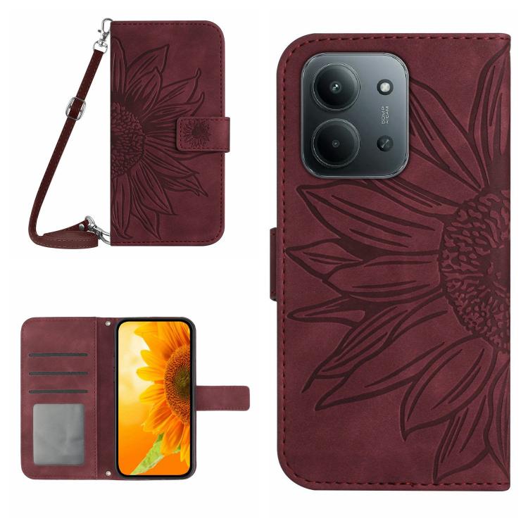 Skin Feel Sun Flower Embossed Flip Leather Phone Case with Lanyard, For Redmi 15 5G / 4G EU 171mm, For Redmi 15C 5G / 4G Global 171mm
