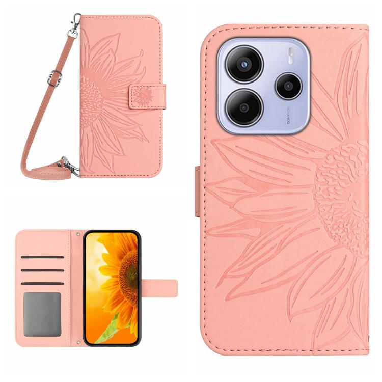 Skin Feel Sun Flower Embossed Flip Leather Phone Case with Lanyard, For Redmi A5 4G 171.7mm / Poco C71, For Redmi Note 14 4G 164.84mm EU Version