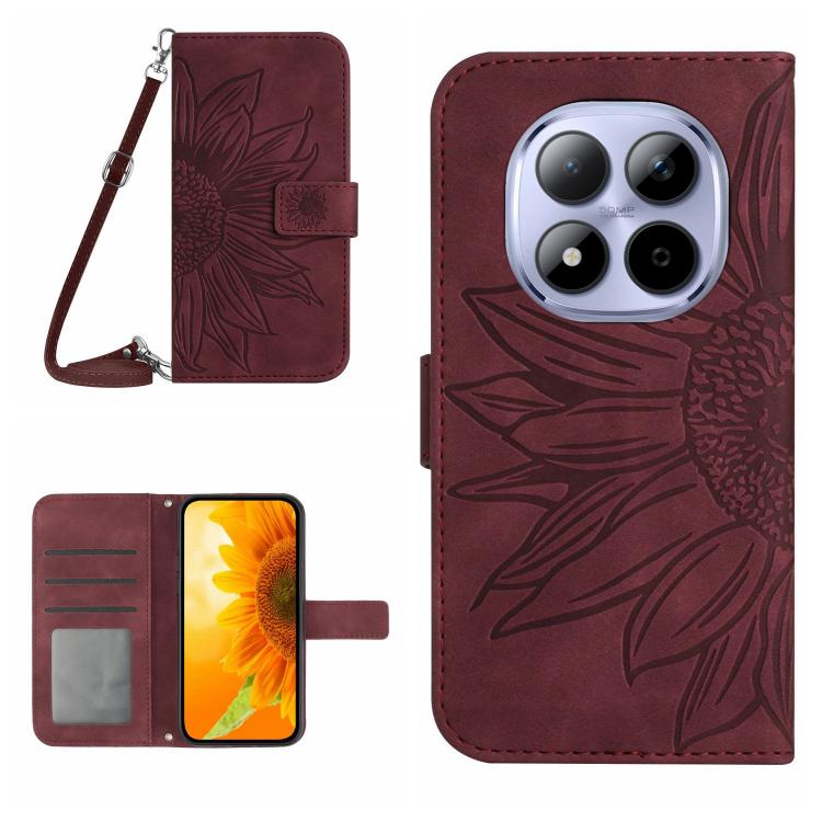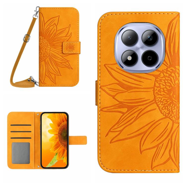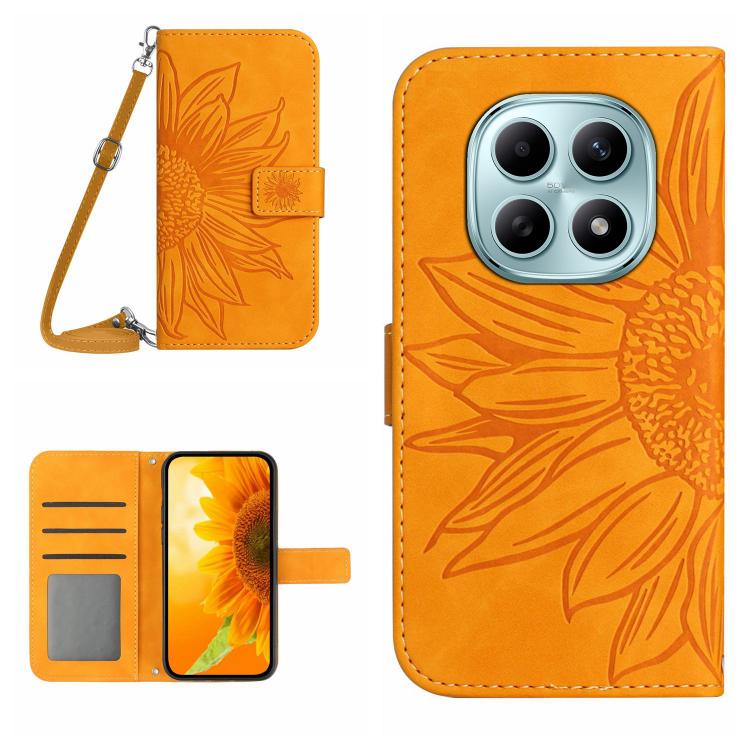 Skin Feel Sun Flower Embossed Flip Leather Phone Case with Lanyard, For Redmi Note 15 Pro 4G Global 165.8mm, For Redmi Note 15 Pro+ 5G Global 163.3mm