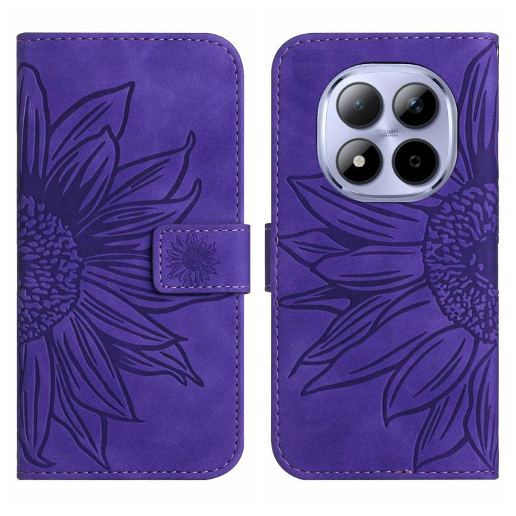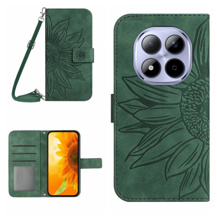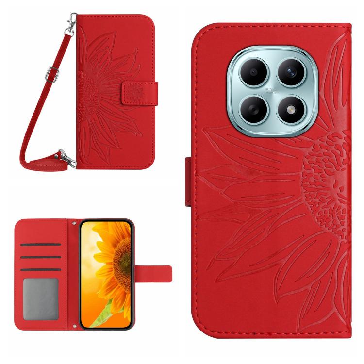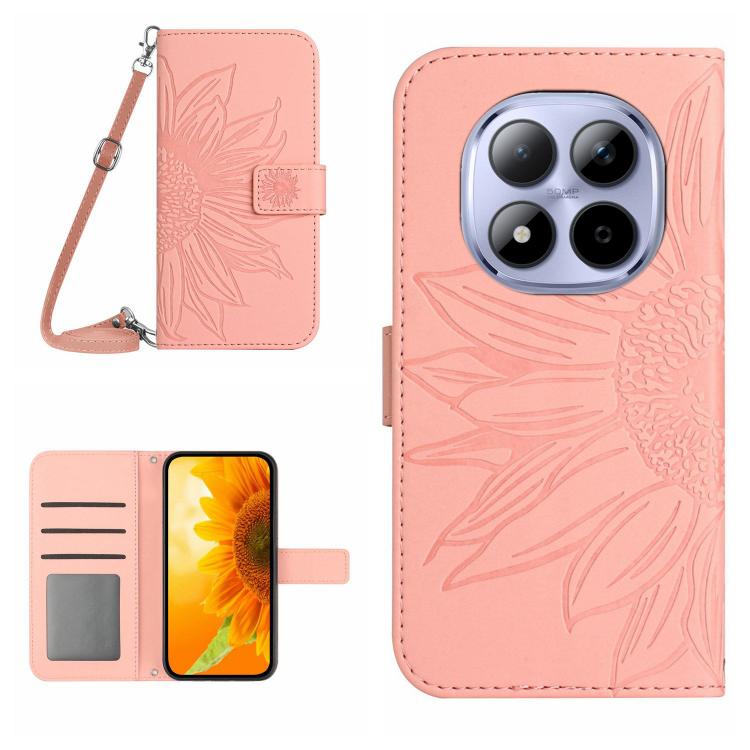 Skin Feel Sun Flower Embossed Flip Leather Phone Case with Lanyard, For Redmi Note 15 Pro 5G Global 163.6mm, For Redmi Note 15 5G Global 164mm