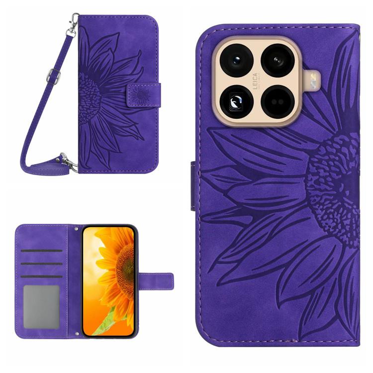 Skin Feel Sun Flower Embossed Flip Leather Phone Case with Lanyard, For Xiaomi 15T Pro, For Xiaomi 15T