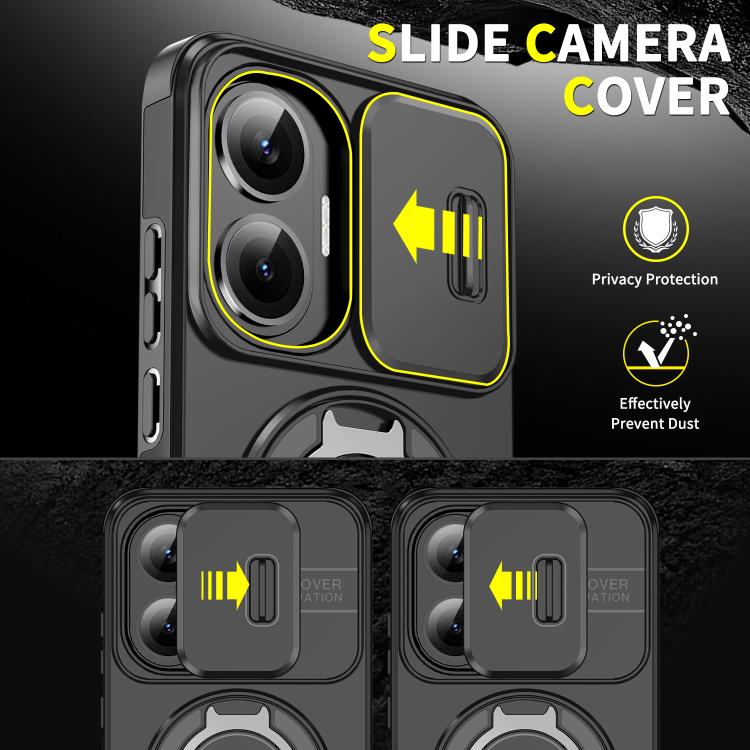 Sliding Camshield Ring Holder Phone Case, For Redmi Turbo 4 Pro / Poco F7, For Redmi Note 14 4G 164.84mm, For Redmi Note 14 Pro 5G / 4G, For Redmi Note 14 4G 163.25mm