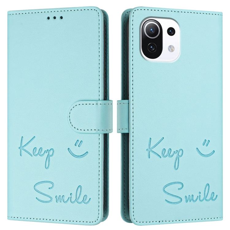 Smile Embossing RFID Leather Phone Case, For Xiaomi Mi 11 Lite 4G / 5G, For Xiaomi 11T / 11T Pro, For Xiaomi Poco M3 Pro, For Xiaomi Poco X3 GT