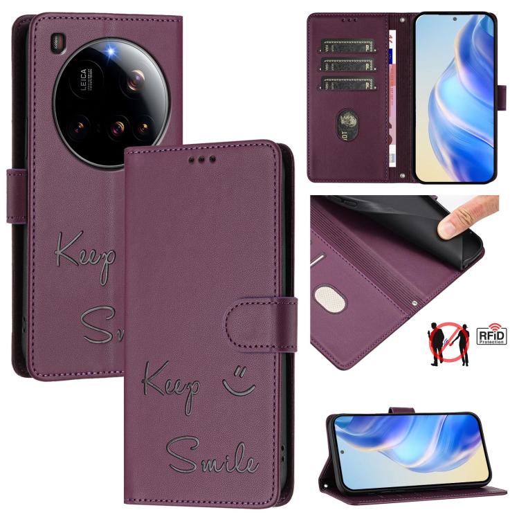 Smile Embossing RFID Leather Phone Case, For Xiaomi Poco X7 5G / Redmi Note 14 Pro 5G, For Xiaomi 15 Ultra, For Xiaomi Poco X7 Pro 5G / Redmi Turbo 4 5G, For Xiaomi Poco M7 Pro 5G
