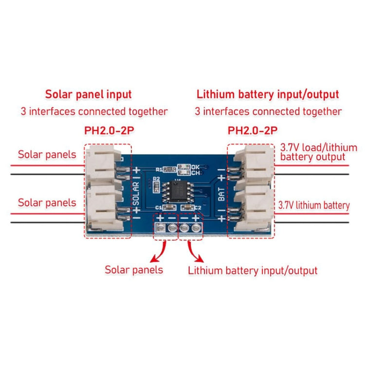 2. Can be utilized for lithium battery charging applications powered by voltage sources with limited current output such as solar panels