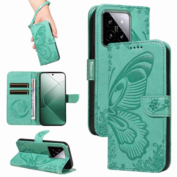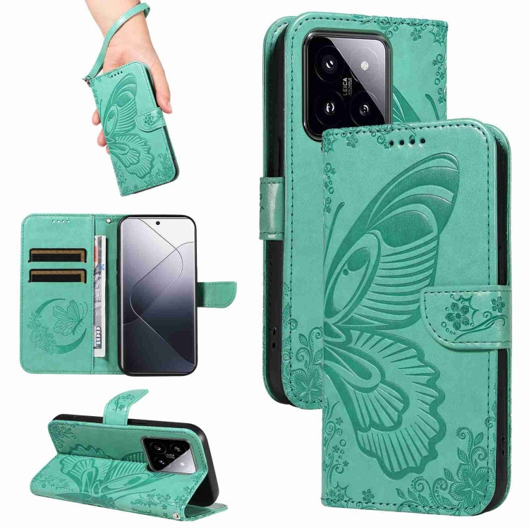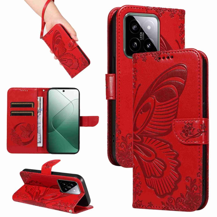 Swallowtail Butterfly Embossed Leather Phone Case, For Xiaomi 14 Ultra, For Xiaomi Redmi 13C / Poco C65, For Xiaomi 14 Pro, For Xiaomi 14