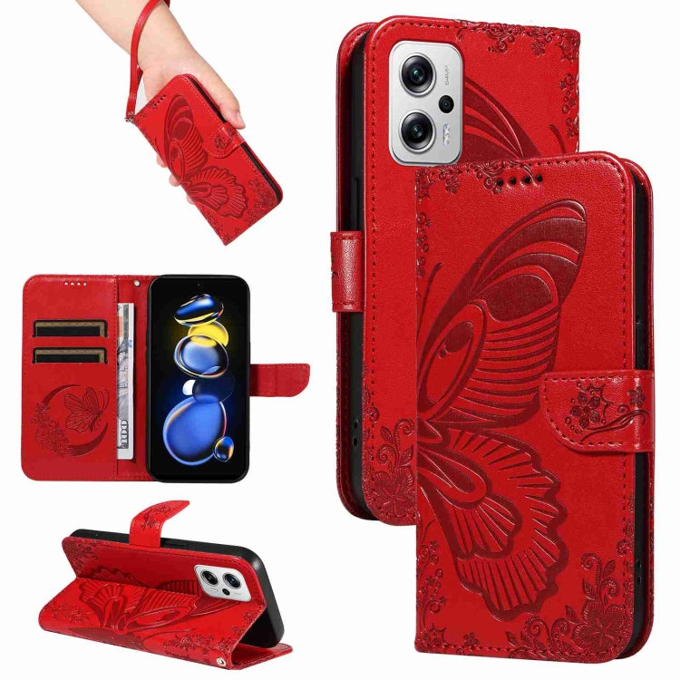 Swallowtail Butterfly Embossed Leather Phone Case, For Xiaomi Poco X4 GT, For Xiaomi Poco F4 5G / Redmi K40S, For Xiaomi Redmi Note 12 Turbo / Poco F5, For Xiaomi Redmi Note 12S 4G / 11 / 11S