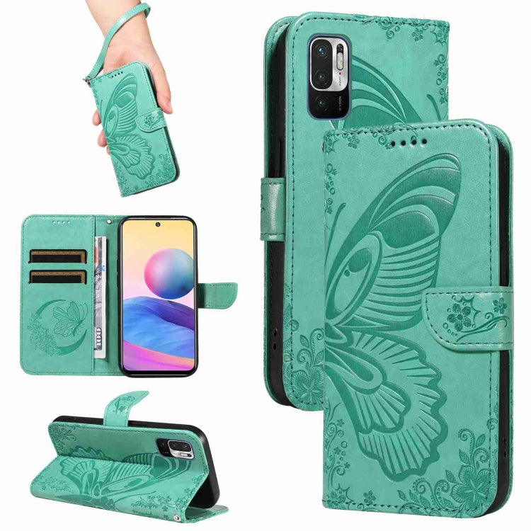 Swallowtail Butterfly Embossed Leather Phone Case, For Xiaomi Redmi Note 10 5G / 10T, For Xiaomi Poco M3 Pro 5G, For Xiaomi Poco X3 GT 5G, For Xiaomi Mi 11 Lite