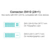 1.Connector DVI D(24+1) 24*7.7mm,also work with DVI-I(24+5),compatible with more devices.
