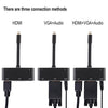 1. This product is a portable multi-function conversion line, through the USB-C interface with digital singal input into HDMI + VGA + Audio audio and video output, and with USB data transfer function, and supports audio and video sync output.