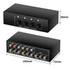 1. 4-input 1-output AV RCA audio video selector switcher allows you to connect four audio or video sources to one TV with standard yellow, red and white RCA connectors enabled. This is very useful if your TV has limited inputs and you want to switch between multiple devices without frequently unplugging cables.