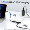 4. Maximum 100W power input: 100W input power can provide 85W charging power to your computer, and has over-current and short-circuit protection to ensure you are safe at every step of charging. Note: Charger not included, please make sure the USB-C port on the host device supports charging