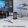 2. Latest PD3.1 Technology: This docking station uses advanced PD3.1 chip technology, allowing for up to 140W USB-C PD input. It supports passthrough charging with an output power of up to 125W, providing fast charging for any USB-C laptop (charging support required)