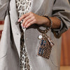 Wrist Ring PU Leather Card Case Key Chain Coin Purse, Coffee Leopard, White Leopard, Black, White Snake, Black Snake