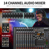 Features1. Professional Mixer Audio: XTUGA MB1404FX channel audio mixer has 12 MONO+ 2 stereo inputs, 4 group outputs and 3 AUX outputs. Each channel has a +48V phantom power selection, allowing the mixer to be used with both condenser and wired microphones.