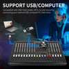 4.Multi-format playback support: With Bluetooth playback function, it can be connected to mobile phones, tablets, etc. The mixer can wirelessly transmit music tracks from iOS and Android smartphones, with digital display MP3 (U disk MP3 input), MP3 with recording function, you can record your favorite songs to USB flash memory through the mixer driver.