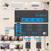 1. Supports 2 computers and 3 monitors (2 HDMI ports + 1 monitor port), suitable for devices equipped with DP and HDMI ports, allowing 2 computers to share a set of mouse, keyboard and monitor