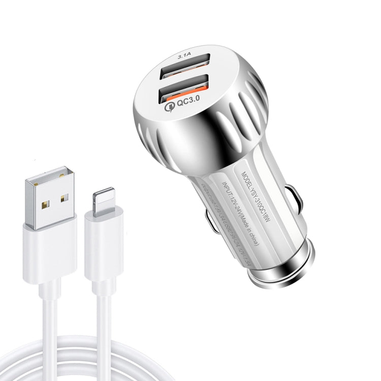 YSY-310QC18W QC3.0 Dual Port USB Car Charger + 3A USB to 8 Pin Data Cable, Cable Length: 1m, YSY-310QC18W with 8 Pin Cable, with 8 Pin Cable