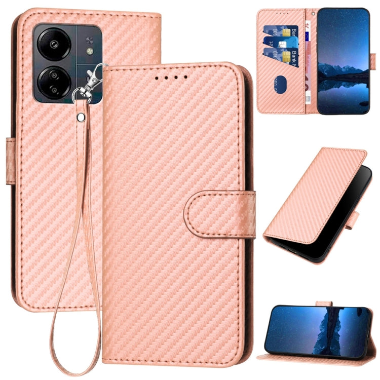 YX0070 Carbon Fiber Buckle Leather Phone Case with Lanyard, For Xiaomi Poco X6 Pro 5G, For Xiaomi 14 Ultra, For Xiaomi Redmi 13C 4G/Poco C65