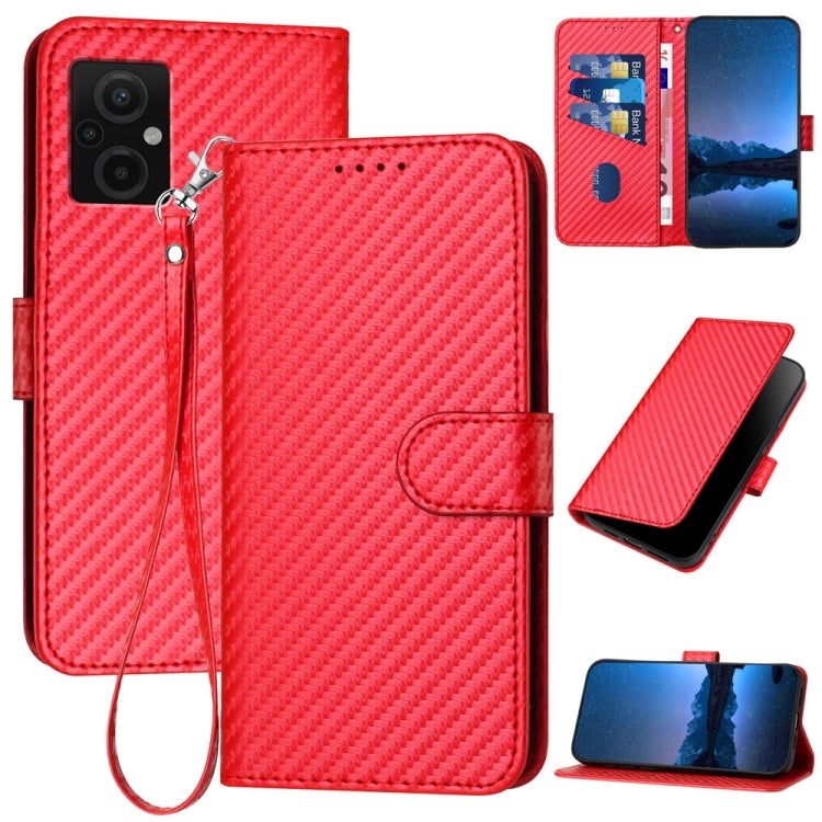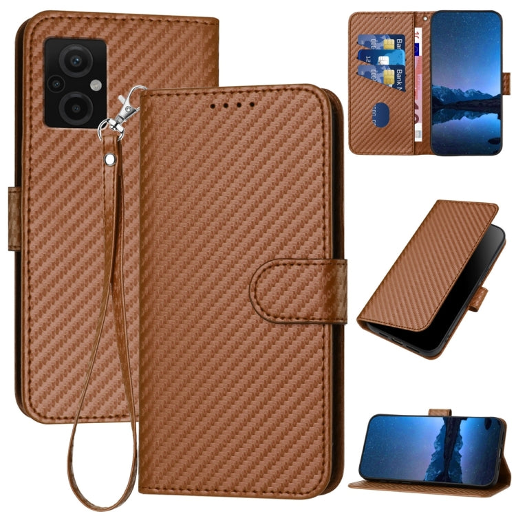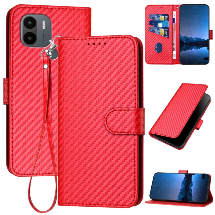 YX0070 Carbon Fiber Buckle Leather Phone Case with Lanyard, For Xiaomi Redmi A1+, For Xiaomi Poco M4 5G / Poco M5 4G, For Xiaomi 12T / 12T Pro / Redmi K50 Ultra